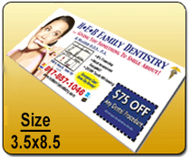 The smallest, and actually a cool piece, is a 3.5x11 Postcard, with or without a Tear Off Business Card - this is actually a great card if you really want to put a business card, coupon card, discount card or other offer into your prospects hands - the Tear Off Business Card is 160lb Mega Thick Stock - so probably nicer than what you currently may have in your wallet.